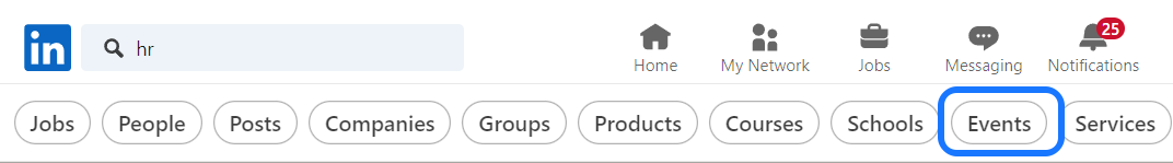 Start by opening your LinkedIn page and searching for the event you want to target. You have two options: